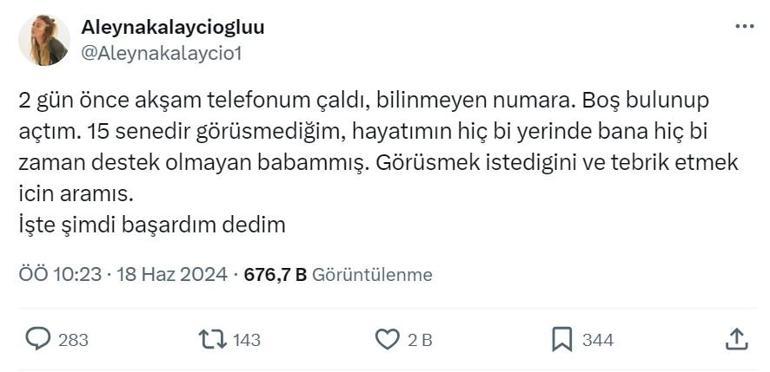 Kalaycıoğlu, X ( Twitter ) hesabından, 2 gün önce babasının aradığını açıkladı. Güzel isim, paylaşımında şu ifadeleri kullandı: