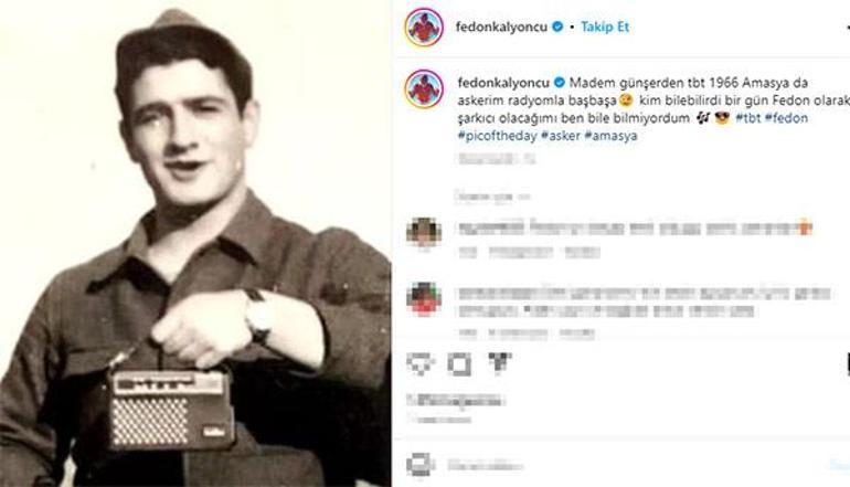 77 yaşındaki sanatçı, siyah beyaz fotoğrafına, "Madem günlerden tbt, 1966 Amasya'da askerim radyomla baş başa. Kim bilebilirdi bir gün Fedon olarak şarkıcı olacağımı, ben bile bilmiyordum" notunu düştü.