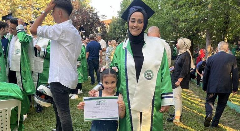 KOSTÜ Başiskele Kampüsü'nde gerçekleşen mezuniyet törenine 6 yaşındaki kızı ile gelen anne Yavuz, giydiği cübbesiyle diplomasını aldı. Sürecin iki çocukla beraber zor olduğunu anlatan Ülkü Yavuz, "Annemin sağ olsun bana çok desteği oldu. Çocuklarıma baktı. Her türlü destekçi ailem oldu. Hepsine teşekkür ediyorum. Zorluydu ama güzeldi. Ben 34 yaşındayım. Arkadaşlarım benden yaşça küçüktü. Onlarla beraber güldük, eğlendik ama eve gittiğimde bazen başımı yastığa koyduğumda ağladığım zamanlar da çok oldu. Zorlu süreçlerden geçtim ama çok şükür ki bugün buradayım ve mezun oldum. Heyecanımı anlatamıyorum. Çok mutluyum" dedi.