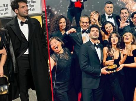 Yargı'nın başrol oyuncuları Pınar Deniz ve Kaan Urgancıoğlu kırmızı halıda poz verdi. Urgancıoğlu, Emmy heykelciğini sosyal medya hesabından paylaşmayı da ihmal etmedi.