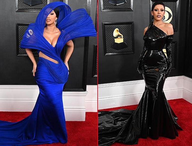 Cardi B, kobalt mavisi, yaka kısmı bir elbiseyle törende boy gösterdi. Doja Cat, siyah vinil elbisesi, çarpıcı göz makyajı ve kısa saçlarıyla adeta göz kamaştırdı.