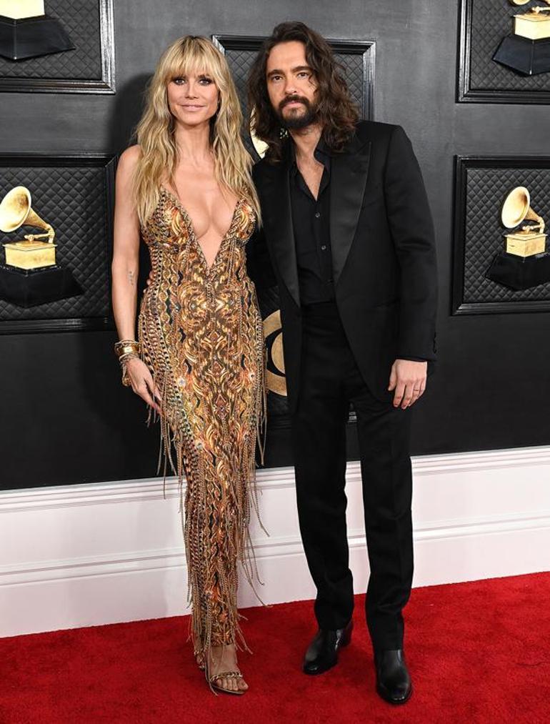 Tokyo Hotel grubunun gitaristi ve solisti Tom Kaulitz ile birlikte kırmızı halıda boy gösteren Heidi Klum; derin dekolteli, altın rengi ve turuncu tonlarından oluşan bir elbise giydi. Kaulitz de klasik, siyah bir takımla Klum'a eşlik etti.