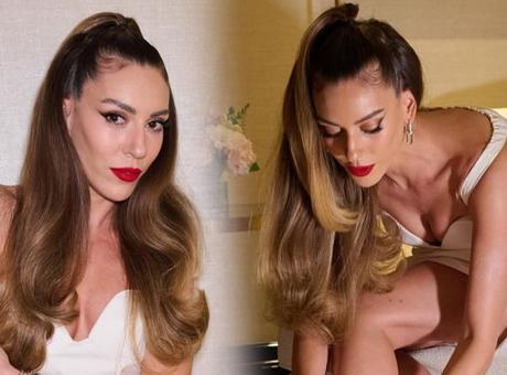 Geceye süper mini beyaz elbisesi ile damga vuran Kobal kombini siyah ayakkabıları ve kırmızı ruju ile tamamladı. Ünlü isim kombini ile verdiği iddialı pozları da sosyal medya hesabından peş peşe yayınladı.