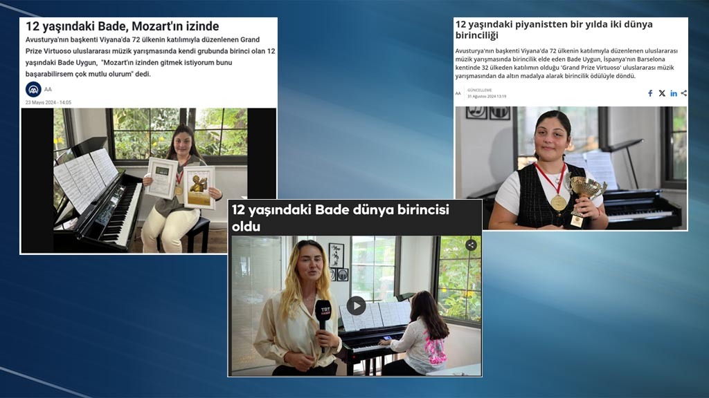 Onlarca haber sitesi ve gazete, “12 yaşındaki piyanistten 1 yılda 2 dünya birinciliği” başlığıyla kullandı Anadolu Ajansı’nın