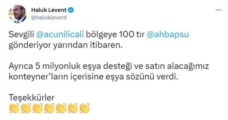 Tüm ülkeyi yasa boğan depremlerin ardından ünlü isimler tek yürek olarak afet bölgesine bağış yaparken, AHBAP Derneği kurucu Haluk Levent; Acun Ilıcalı'nın da deprem bölgesi için büyük bir yardımda bulunduğunu şu sözlerle duyurmuştu: