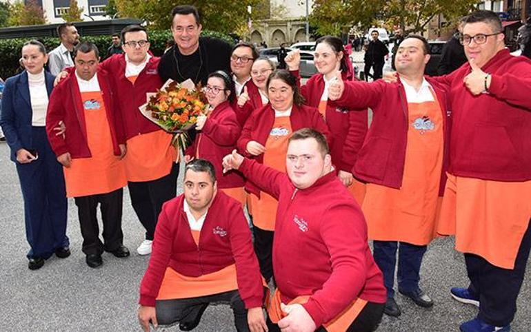 Acun Ilıcalı, Üsküdar Belediyesi bünyesinde olan ve down sendromlu gençlerin işlettiği Tebessüm Kahvesi'ni, Belediye Başkanı Hilmi Türkmen'in de katılımıyla ziyaret etti.