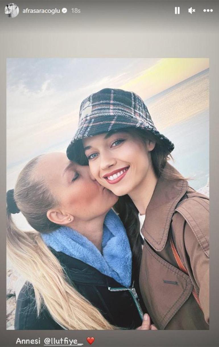 Güzel oyuncu, annesi Lütfiye Saraçoğlu ile Akçay'da deniz kenarında çekilen fotoğrafını yayınladı. Saraçoğlu'nun paylaşımı, sosyal medyada kısa sürede büyük ilgi gördü.