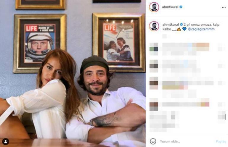 Mutlu çift, ilişkilerinin ikinci yılını orada baş başa yemek yiyerek kutladı. Sevgilisiyle fotoğrafını yayınlayan oyuncu, "İki yıl omuz omuza, kalp kalbe" notunu düşerek, mavi kalp emojisi koydu. Avukat Çağla Gizem Çelik ise, 2 rakamı ve kırmızı kalp emojisiyle, selfie yaptıkları kareyi takipçilerinin beğenisine sundu. Çifte, yorum ve beğeni yağdı.