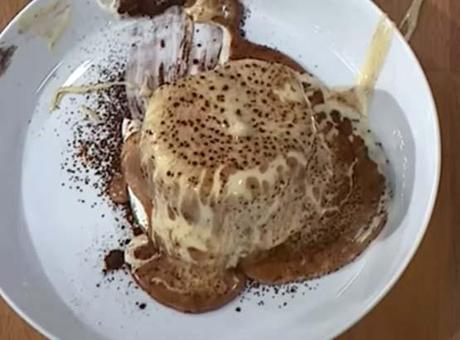 Yeniden üstüne kakao elenir ve servisini yaparken jelatinin üstünde kalan kısmından tutarak yavaşça yukarı kaldırılır.