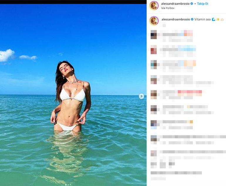 Isla Holbox Adası'na giderek sıcak havanın tadını çıkaran Ambrosio, deniz keyfi yapmayı da ihmal etmedi. Beyaz bikinisiyle objektif karşısına geçen Alessandra, yılalra maydan okuyan fit hali ve güzelliğiyle dikkat çekti.