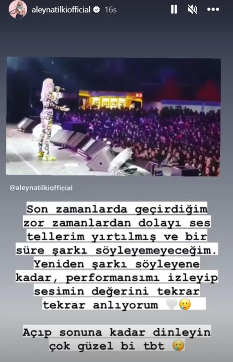 Aleyna Tilki, bir süredir ses tellerindeki rahatsızlık edeniyle konser maratonuna ara vermişti. Hatta ses teli felci geçirdiği, yakında bir operasyon geçireceği olacağı iddia edilmişti.