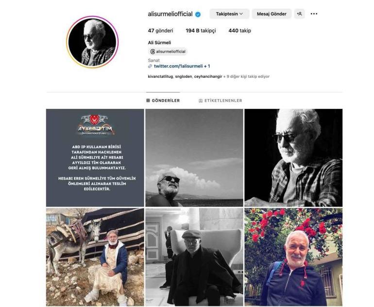 'Deli Yürek', 'Kurtlar Vadisi: Pusu', 'Çukur' ve 'Eşkıya Dünyaya Hükümdar Olmaz' gibi çok izlenen dizilerde rol alan Ali Sürmeli’nin Instagram hesabı geçtiğimiz günlerde ele geçirilmişti.