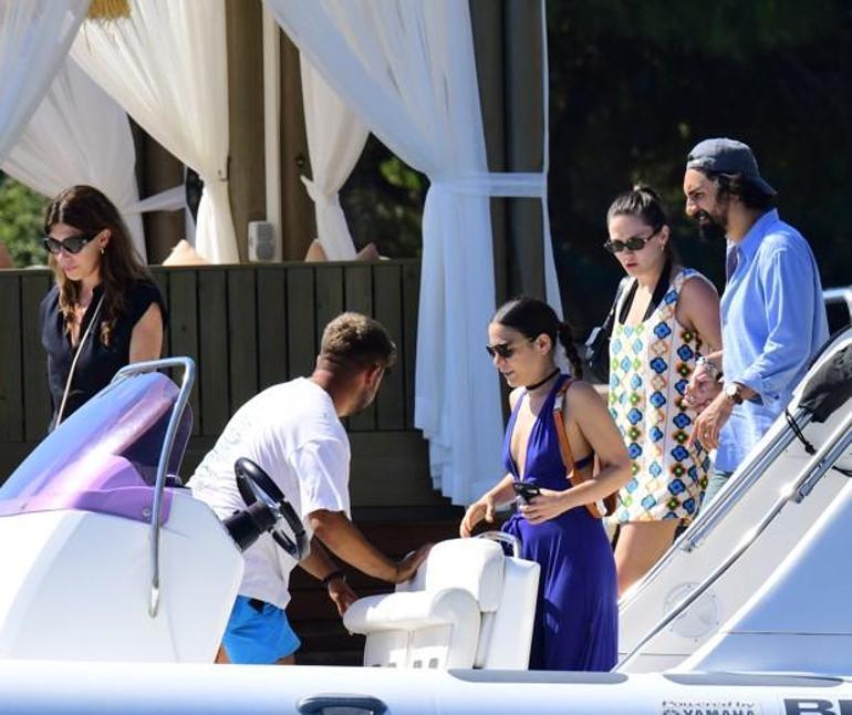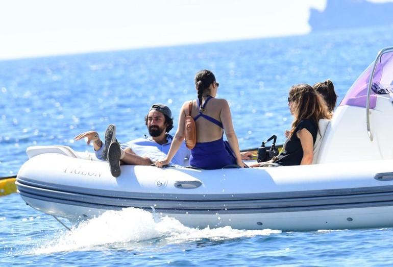 Umut Evirgen ve Alina Boz çifti önceki gün Bodrum Yalıkavak'ta görüntülendi. Serafina Mare'de yaklaşık üç saat oturan çift arkadaşlarıyla sohbet edip yemek yedikten sonra kendilerini almaya gelen bota bindikleri esnada objektiflere yansıdı.