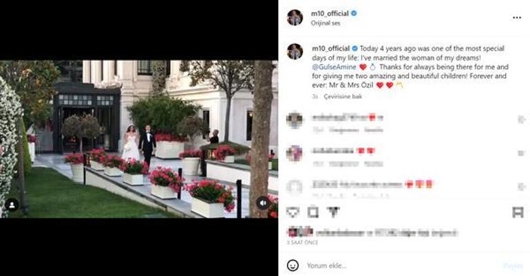 Mesut Özil ise dördüncü evlilik yıl dönümlerinde, düğünden bir videosunu paylaşıp altına şu romantik notu düştü: