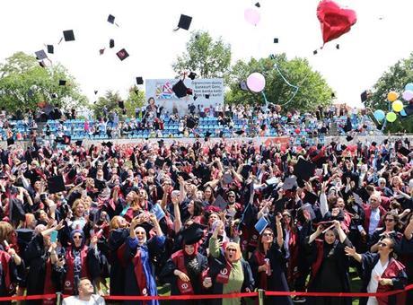 Öğrenciler, etkinliklerin ardından keplerini havaya fırlatarak mezuniyet heyecanı yaşadı.