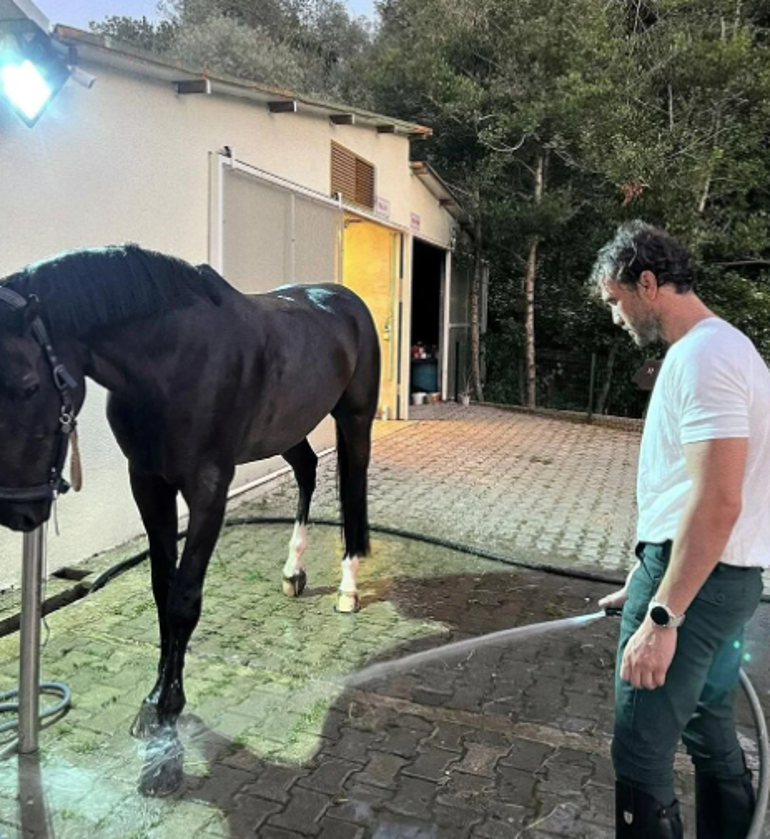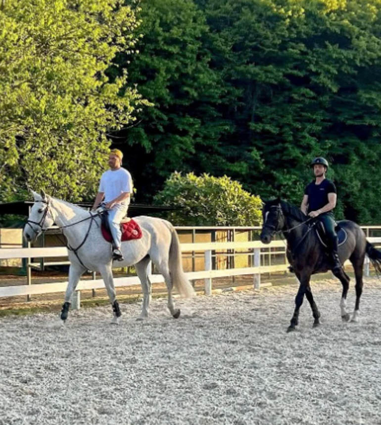 Ünlü oyuncu, atıyla ilgilendiği ve at bindiği anları takipçileriyle paylaştı. Yakın arkadaşı Engin Öztürk de İynemli'ye eşlik etti.