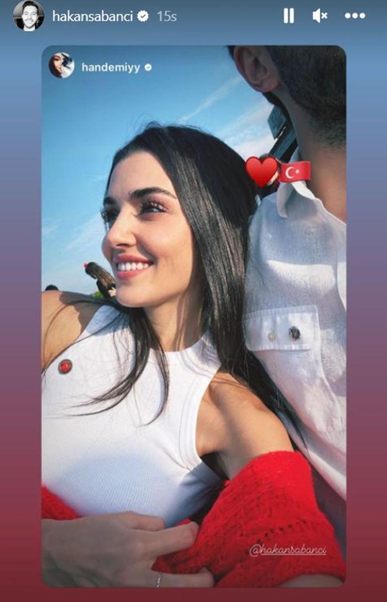 Birlikte Cumhuriyetimizin 100. yılı için kutlamalara katılan ünlü çiftten Erçel, sevgilisinin omzuna yaslandığı bir kareyi 31.2 milyon takipçisi bulunan Instagram hesabının hikayeler bölümünden kalp ve Türk bayrağı emojisi ekleyerek paylaştı.