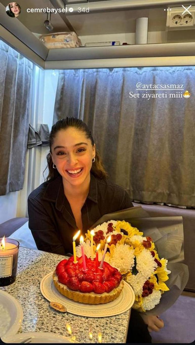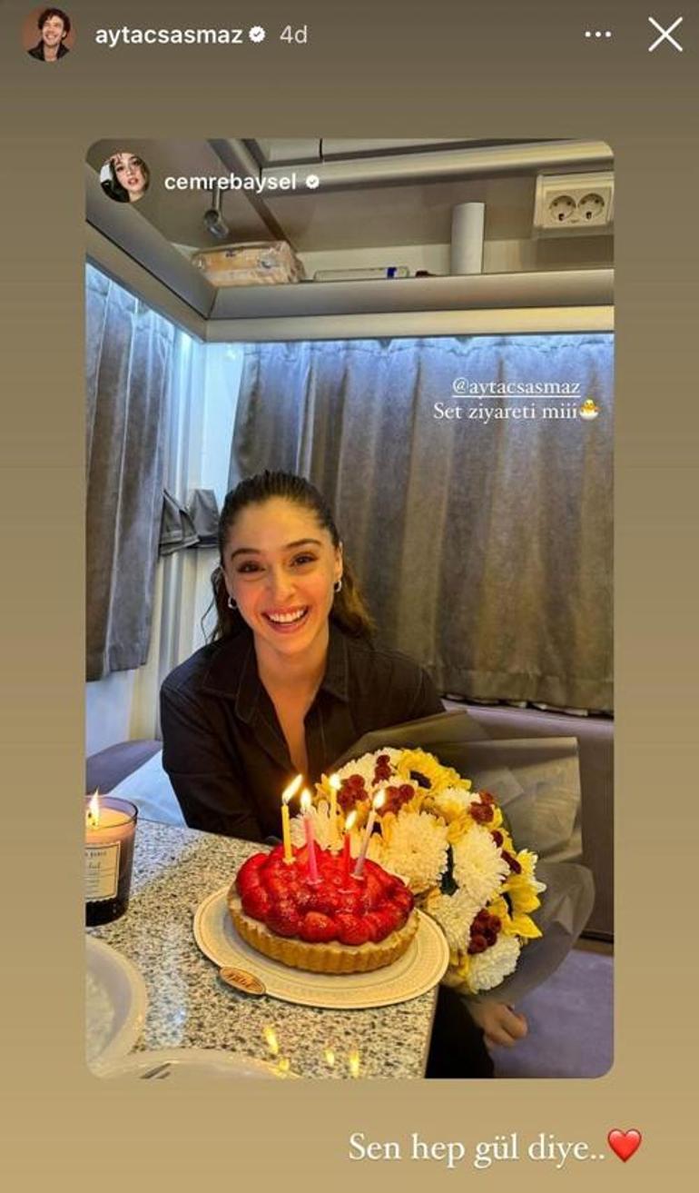 Aytaç Şaşmaz'dan Cemre Baysel'e set sürprizi! 'Sen hep gül diye'