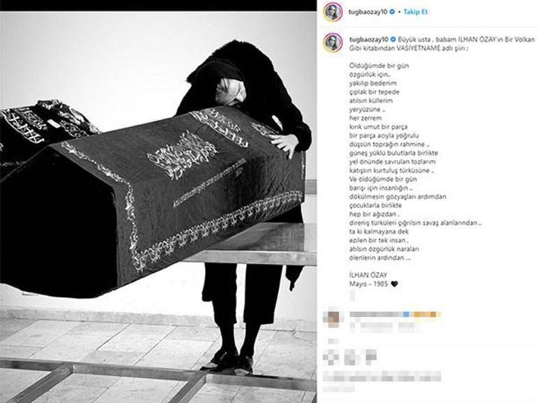 Tuğba Özay babasına olan özlemini Instagram hesabından yayınladığı mesajla dile getirdi. Eski manken, babasının 'Bir Volkan Gibi' adlı kitabında yer alan 'Vasiyetname' şiirini paylaştı.