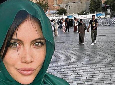 Model, misafirlerine Tarihi Yarımada’nın turistik yerlerini gezdirdi. Nara, Ayasofya Camii önünde başörtülü verdiği pozunu 16 milyon 800 bin takipçisi olan Instagram hesabından paylaştı. Kısa sürede binlerce yorum alan model, tramvay yolunda yürüdüğü anı da yayınladı.