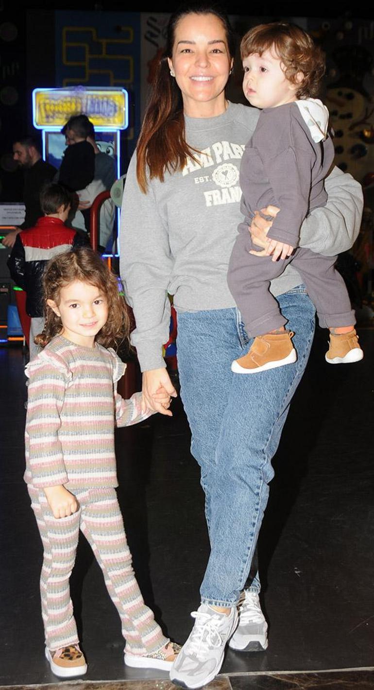 Öğle saatlerinde çocuklarıyla eğlenceli vakit geçirmek için eğlence merkezine gelen şarkıcı Bengü, objektiflere Zeynep ve Selim'le birlikte poz vermeyi ihmal etmedi.