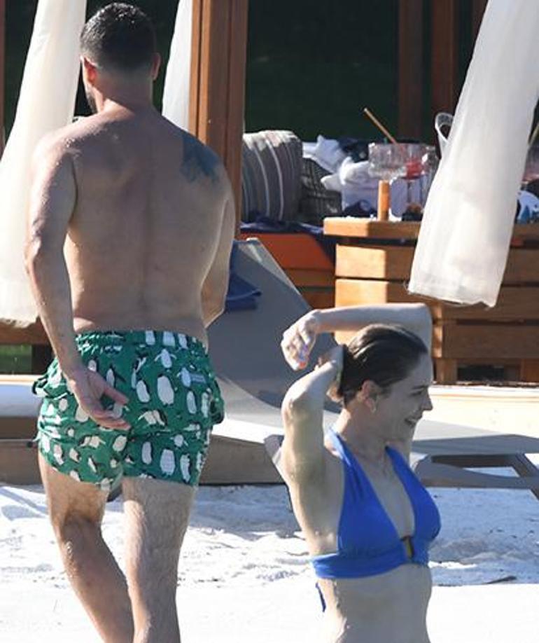 Berk Oktay'la suyun içerisinde bir hayli eğlenen Yıldız Çağrı Atiksoy, eşi denizden çıkmak isteyince elini tutup engellemek istedi. Oktay'ın arkasından sudan çıkmaya hazırlanan oyuncu, kendisini tanıyan hayranlarıyla kısa süre sohbet edip, eşinin yanına gitti.