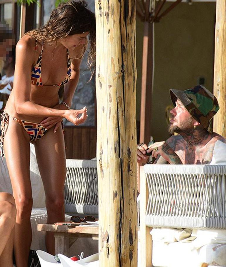 Yalıkavak'ta locada oturduğu sırada stil danışmanı Umut Eker'e hararetli şekilde bir şeyler anlatan oyuncu, bir ara ayağa da kalkarak, el hareketleriyle durumu özetledi.