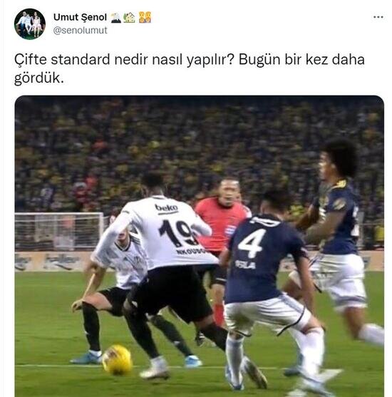Şenol, daha önce Fenerbahçe - Beşiktaş derbisinde yaşanan bir pozisyonu paylaştı ve, "Çifte standart nedir nasıl yapılır? Bugün bir kez daha gördük." ifadelerini yazdı.
