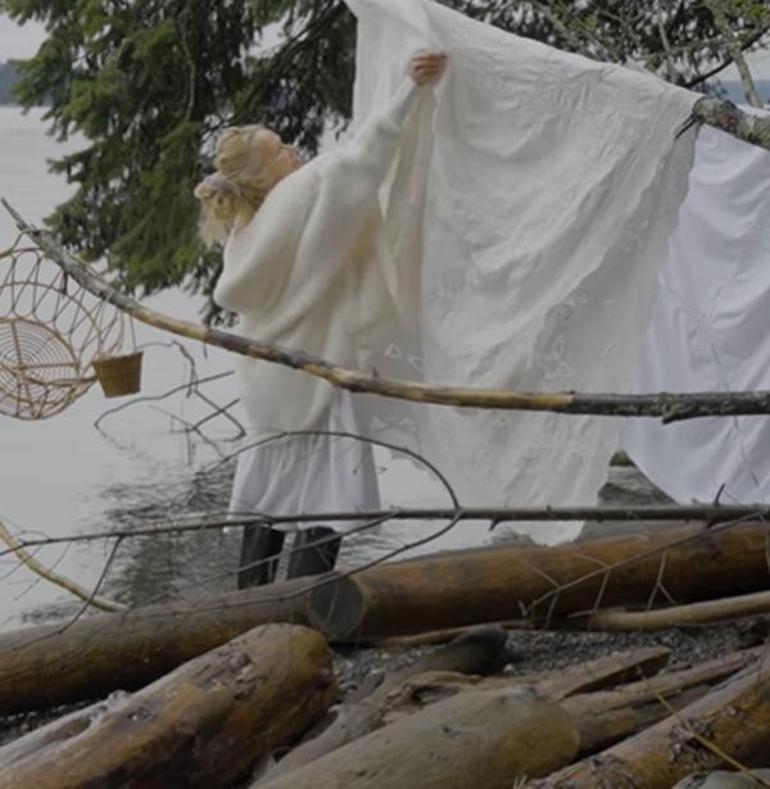 Reklam filmi için beyaz bir elbise giyen ve saçlarını topuz yapan Anderson, bahçede çamaşır asıp doğanın içindeki yaşantısından kesitler paylaştı.