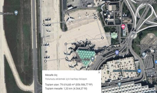 tam olarak belirlenebiliyor. Ben de Google haritalar üzerinden kabaca 80.000 metrekare hesapladım.