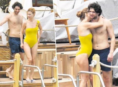 İskelede sevgilisine sarılan oyuncu, denizde ise aşka geldi. Ünsal, iskelenin merdivenlerinden inerken ayağını burktu. -UMUT ÜNVER