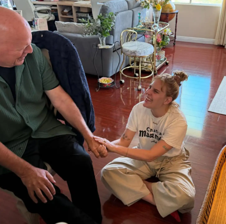 Babası Bruce Willis ile babaannesini ziyaret eden Tallulah Willis'e nişanlısı Justin Acee de eşlik etti.