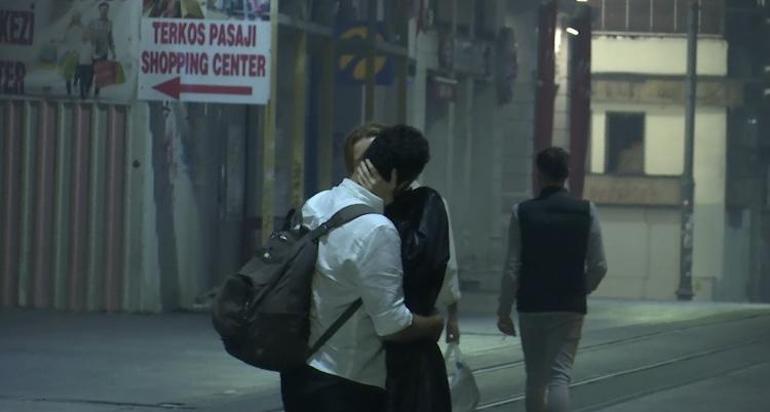 Asmalımescit'te bir mekanda eğlenen çift, mekan çıkışında alkolün de verdiği etkiyle kendilerini İstiklal Caddesi'nde buldu. Etraftakilere aldırmaksızın sarmaş dolaş olan sevgililer, birbirleriniöpücüklere boğdu.