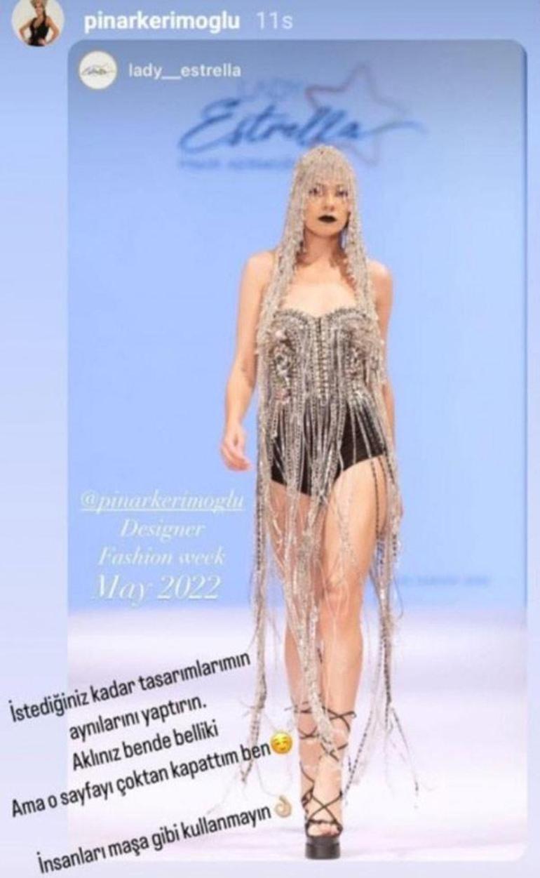 Diva'nın eski modacısı olan Pınar Kerimoğlu, benzer bir tasarımını, “İstediğiniz kadar tasarımlarımın aynılarını yaptırın. Aklınız bende belli ki. Ama osayfayı çoktan kapattım ben" mesajıyla yayınladı.