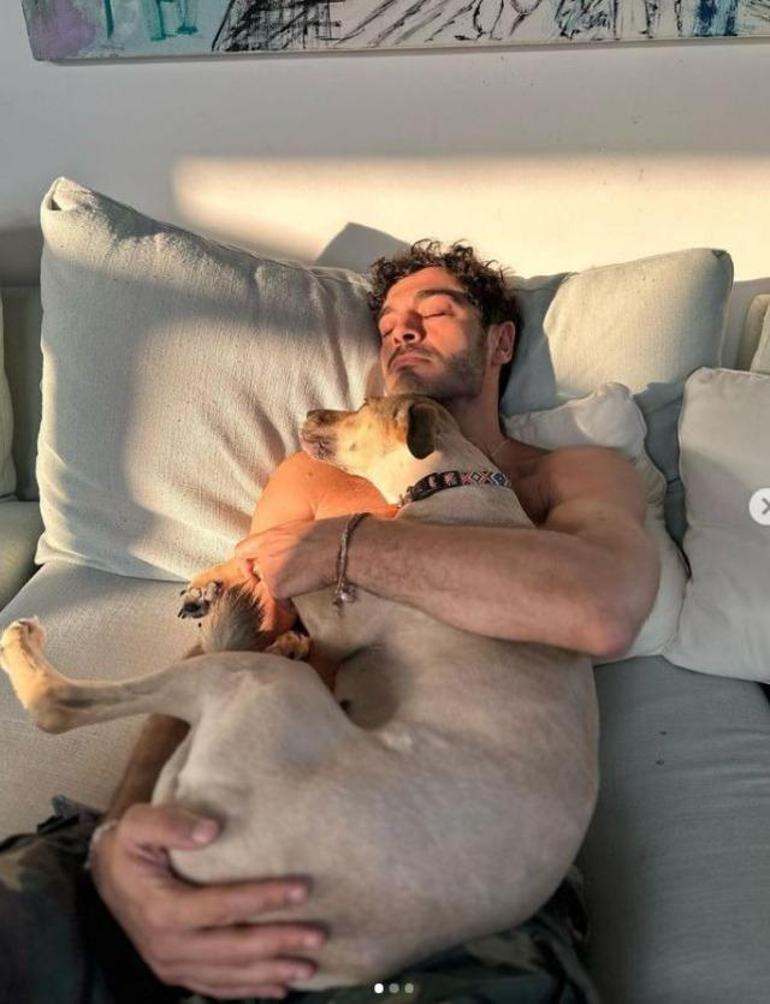 Burak Deniz oyuncunun köpeği olduğu iddia edilen sevimle dostuyla yatakta pozlarını paylaşınca sosyal medya yıkıldı.