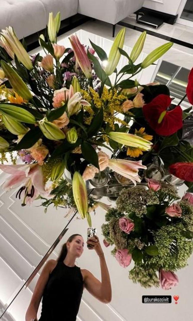 İstanbul'daki evinin bahçesinden oğlu Kerem ile karesini paylaşan Fahriye Evcen, eşi Burak Özçivit'in kendisine yaptığı sürprizi de paylaşmayı ihmal etmedi. Özçivit, tatilini bitiren ve eve dönen eşini çiçeklerle karşıladı.