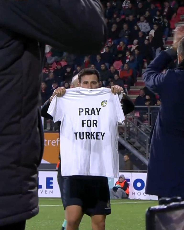 Fortuna Sittard forması giyen Burak Yılmaz, karşılaşmaya ülkemizde yaşanan deprem felaketine destek mesajı içeren kaptanlık pazubandıyla çıktı.