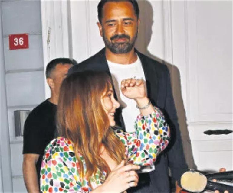 Demet Evgar'ın Emirgan'daki evinde gerçekleşen düğüne katılan ünlü çiftten Terzioğlu'nun parmağındaki tektaş yüzük dikkatlerden kaçmamıştı.