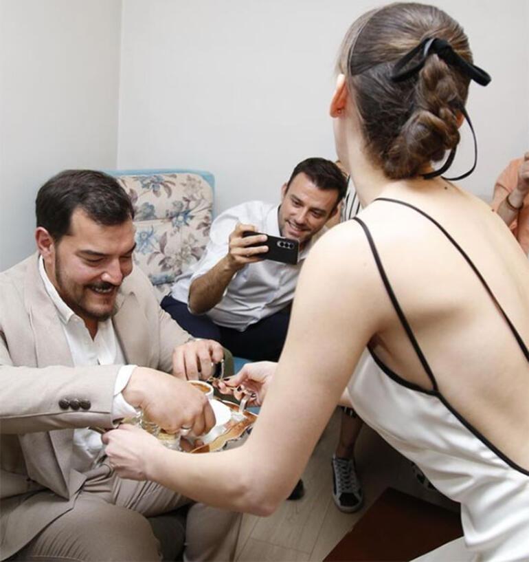 Çağrı Şensoy, Buse Arslan'ı ailesinden istemiş ve müstakbel eşinin ellerinden acı kahve içmişti. Bir hayli heyecanlı oldukları gözlenen çift, bu özel geceden görüntüleri takipçileriyle de paylaşmayı ihmal etmemişti. İkiliyi mutlu günlerinde oyuncu Salih Bademci de yalnız bırakmamıştı.