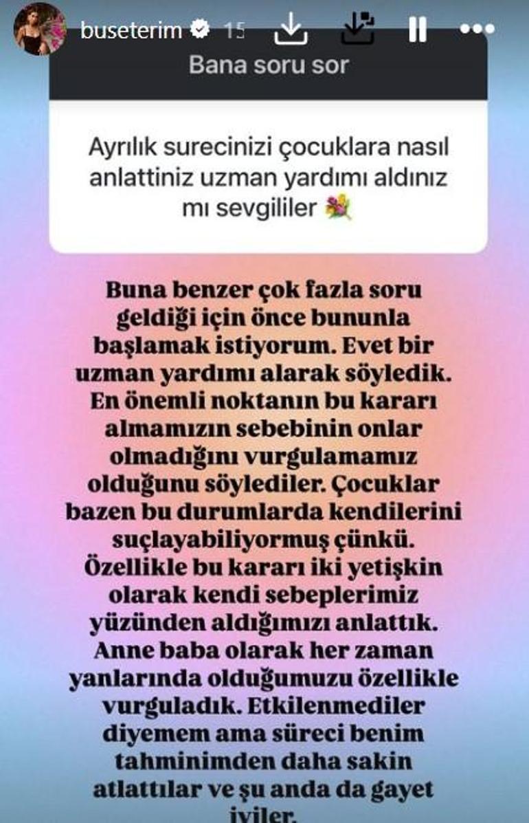 Terim kendisine gelen: 'Ayrılık sürecinizi çocuklara nasıl anlattınız? Uzman yardımı aldınız mı?' sorusuna şu yanıtları verdi: