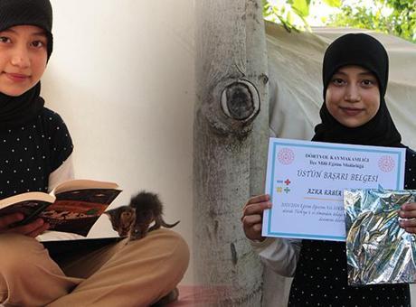 Gürültüden ve ailesinden uzak kalmak için evlerinin bahçesindeki çadırda sınava hazırlandığını dile getiren Azra Rabia Kaçar, “Çok mutluyum, zaten benim hayalimdi. Bu başarı hedefimdi, öğrenince de direkt ailem ve öğretmenlerime söyledim. Ben sisteme bakamadım sistem açılmamıştı, müdür yardımcısı beni yanına çağırdığında öğrendim. Tek hayalim yazılım mühendisi olmak. Gürültüden ve ailemden uzak kalmak için sınavıma çadırda çalıştım. Kedilerim var onlarla birlikte daha mutlu oluyorum. Okulda olmadığım zamanlar dışında hep çadırdayım. Sizin öğretmenleriniz ve aileniz elinden gelen her şeyi yapıyor, bana düşen sadece düzenli kitap okumak ve düzenli çalışmak” İfadelerini kullandı.