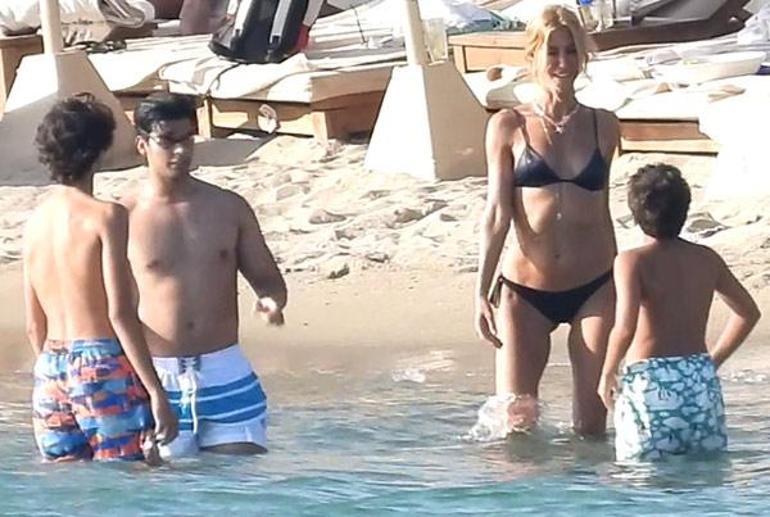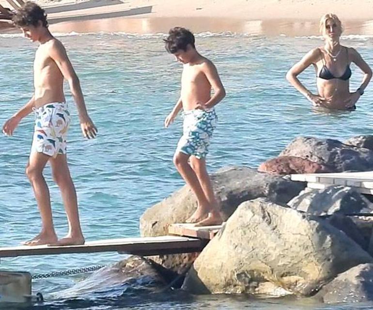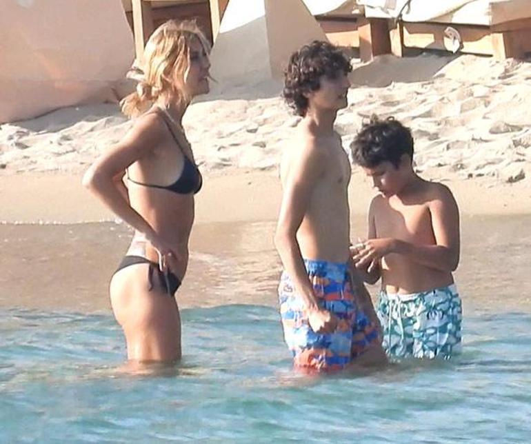 Tatilde neşelerinin bir hayli yerinde olduğu gözlenen ünlü mankenin çocukları, iskeleden atlayarak, annelerine gösteri yaptılar.