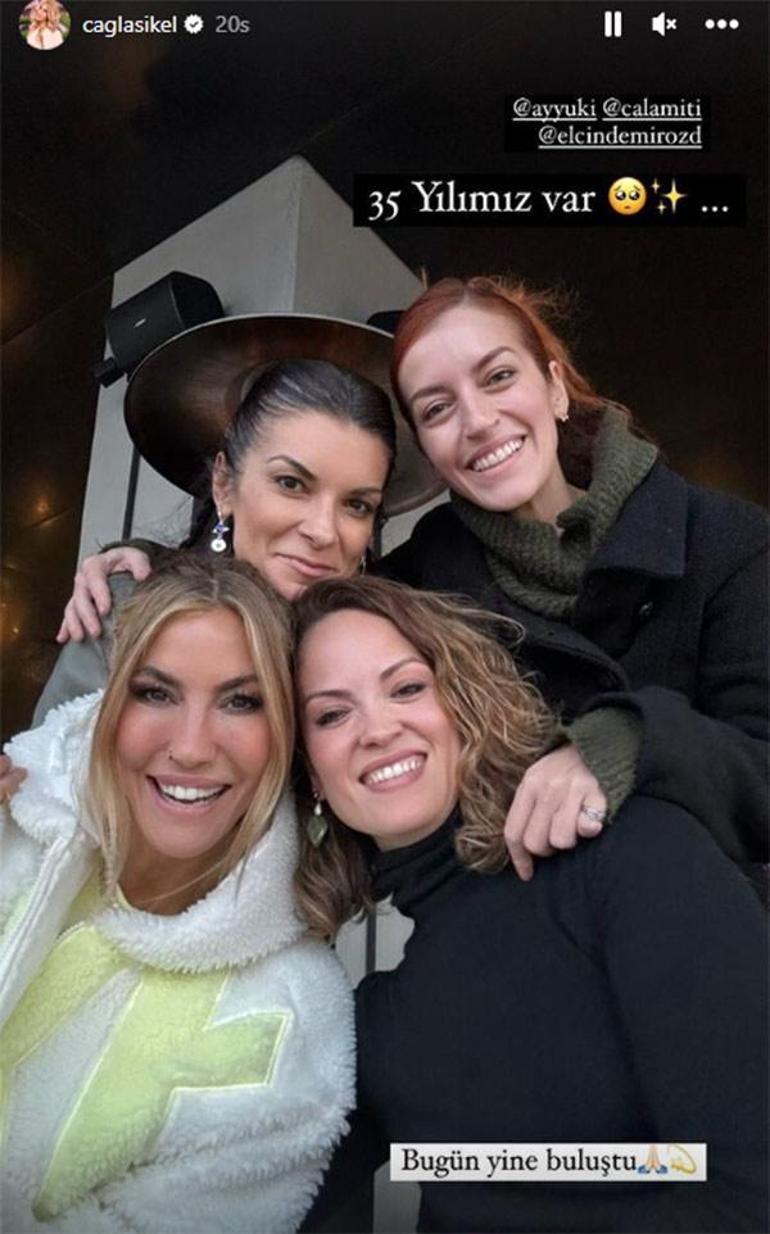 Son dönemde özel hayatıyla magazin gündeminden düşmeyen 45 yaşındaki manken, dikkat çeken kareye, "Bu kızlar bugün yine buluştu. 35 yılımız var" mesajını yazdı.