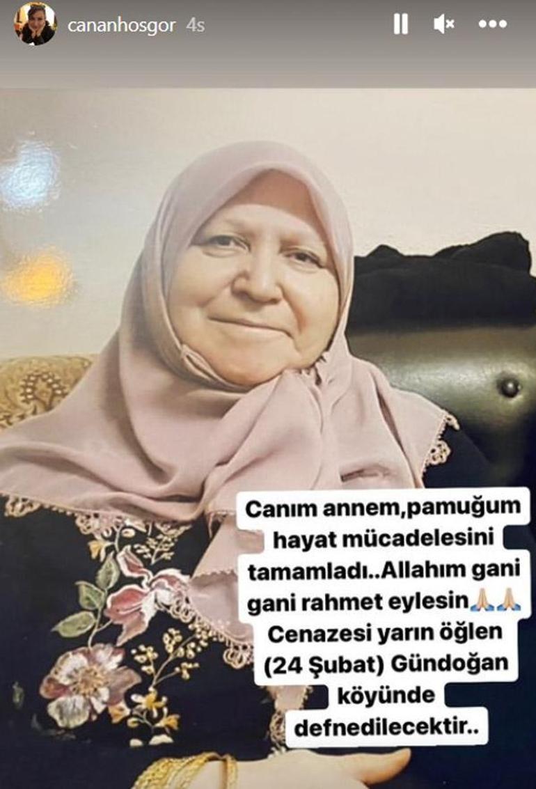 Vefat haberini sosyal medya hesabından duyuran ünlü isim, "Canım annem, pamuğum hayat mücadelesini tamamladı... Allah gani gani rahmet eylesin. Cenazesi yarın öğleden sonra (24 Şubat) Gündoğan köyüne defnedilecektir" ifadelerini kullandı.