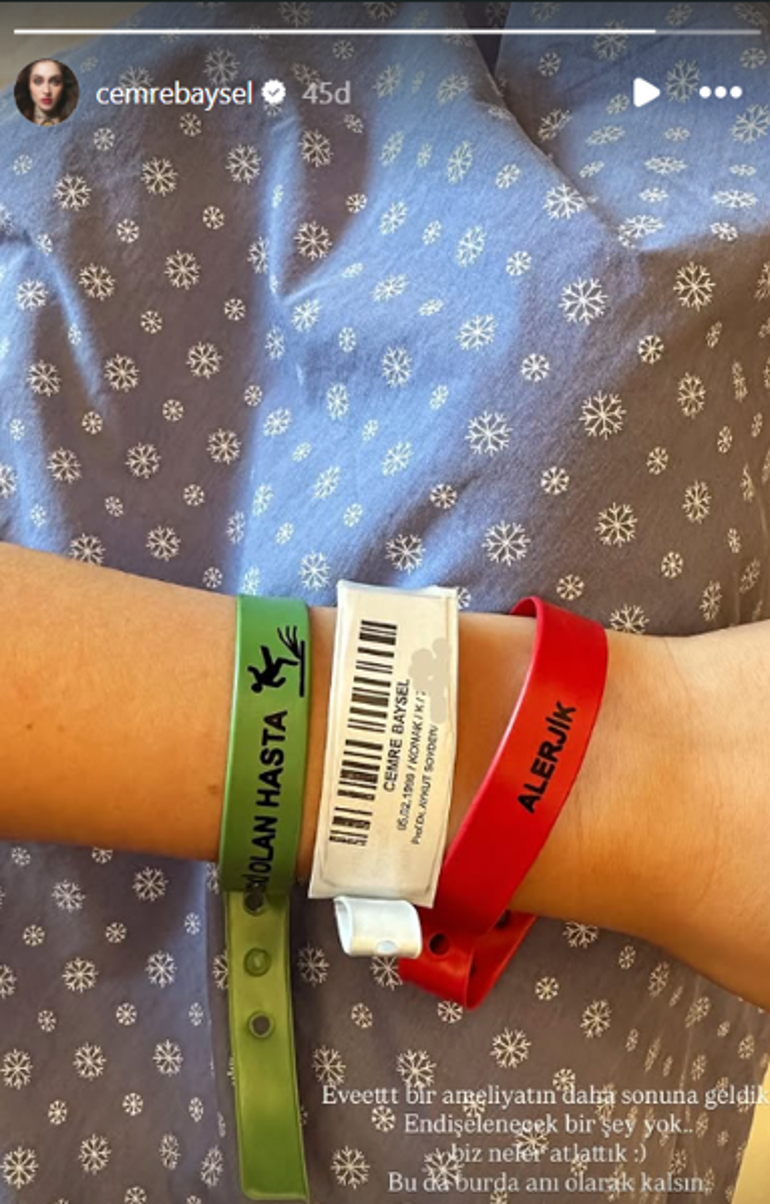 Ameliyat olduğunu söyleyen Baysel paylaşımına, "Evet bir ameliyatın daha sonuna geldik. Endişelenecek bir şey yok biz neler atlattık. Bu da burda anı olarak kalsın" notunu düştü.