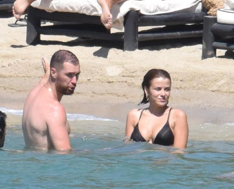 Bir plajda görüntülenen çiftten İlayda Alişan, bir süre güneşlendikten sonra sıcak havadan bunalınca kendilerine eşlik eden bir arkadaşı ile birlikte denize girdi.