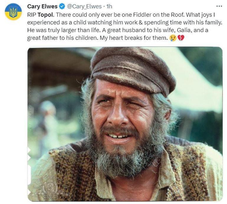 9 Eylül 1935'te Tel Aviv'de dünyaya gelen ve 1971'de ünlü Broadway müzikali 'Damdaki Kemancı' oyunun beyazperdeye uyarlanmasıyla 'Tevye' karakterini canlandıran Chaim Topol'den acı haber geldi. Topol'ün hayata veda ettiği belirtildi.