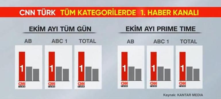 CNN TÜRK hem Total hem ABC hem AB'de yani tüm kategorilerde tüm gün ve prime time'da en çok izlenen haber kanalı oldu.