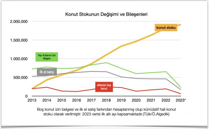 2023 yılı’nın ilk altı ayı dahil Türkiyede inşaatı bitip de oturmaya hazır olan ama ilk el satışı yapılmamış, yani boşta duran konut sayısı ne kadar biliyor musunuz?