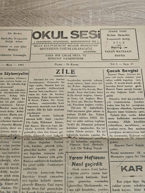 Şef Redaktör bendim. Dolayısıyla da hem Başyazı yazıyordum ve hem de herhangi bir konuda... İşin zor tarafı şuydu: Okula yakın ikamet ettiğim ve gazetenin de sorumlusu olduğum için, okula herkesten önce gelip bu duvar gazetesini bütün sınıfların önünden geçtiği beş basamaklı merdivenin başındaki duvara asmakla görevliydim. Ve öğleden sonra saat 16.00`da tekrar okula gelip duvar gazetemizi bizim sınıfa taşımak zorundaydım. Ama, bütün bunları çok severek yapıyordum ve de gayet mutluydum... Buna paralel olarak, 4ncü sınıftayken Zile Kültür Derneği`nin yayımladığı ÇAĞILTI dergisini okuyor ve sınıfta satışını yapıyor ve parasını üzerimde çok büyük emeği olan Kemal TARHAN öğretmenime teslim ediyordum. Kemal TARHAN Köy Enstitüsü mezunu, kendini öğretmenliğe ve öğrencilerine adamış idealist birisiydi. Bize hem halay öğretirdi ve hem de keman çalarak Batı Müziği dinletirdi. Resim yapma yeteneği çok üst düzeydeydi... Amcasının oğlu resim dersi öğretmeni Fikret Tarhan önceleri ortaokulda daha sonra lisede resim öğretmeniydi. El becerilerimizin gelişmesi için çırpınırdı adeta... Okula yaz kış bisiklette gelir giderdi... Her zaman sinek kaydı traşlı ve de kravatlıydı. Eşi Nimet TARHAN 3ncü sınıftan itibaren erkek kardeşimin öğretmenliğini yaptı. Çok enterasandır ki, öğretmenim Kemal TARHAN beni mezun ettikten sonra, ilkokula başlayan kız kardeşimin de öğretmeni oldu 5 yıl boyunca... Enterasan tesadüfler...